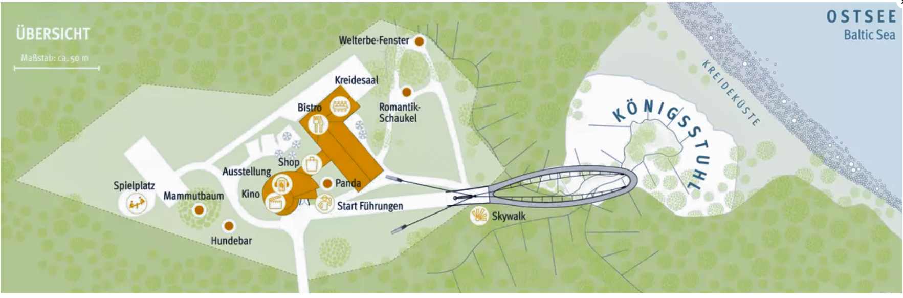The barrier-free, suspended viewing platform above Germany's highest chalk cliff is part of the National Park Centre's overall offer and is included in the admission price.